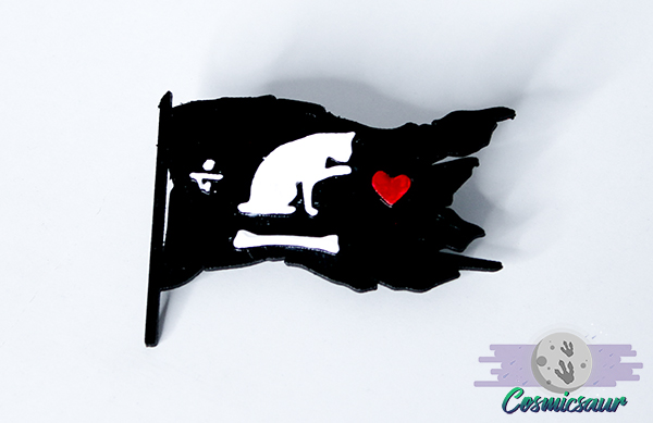 3D printed, hand painted pin based on the cat flag from OFMD!