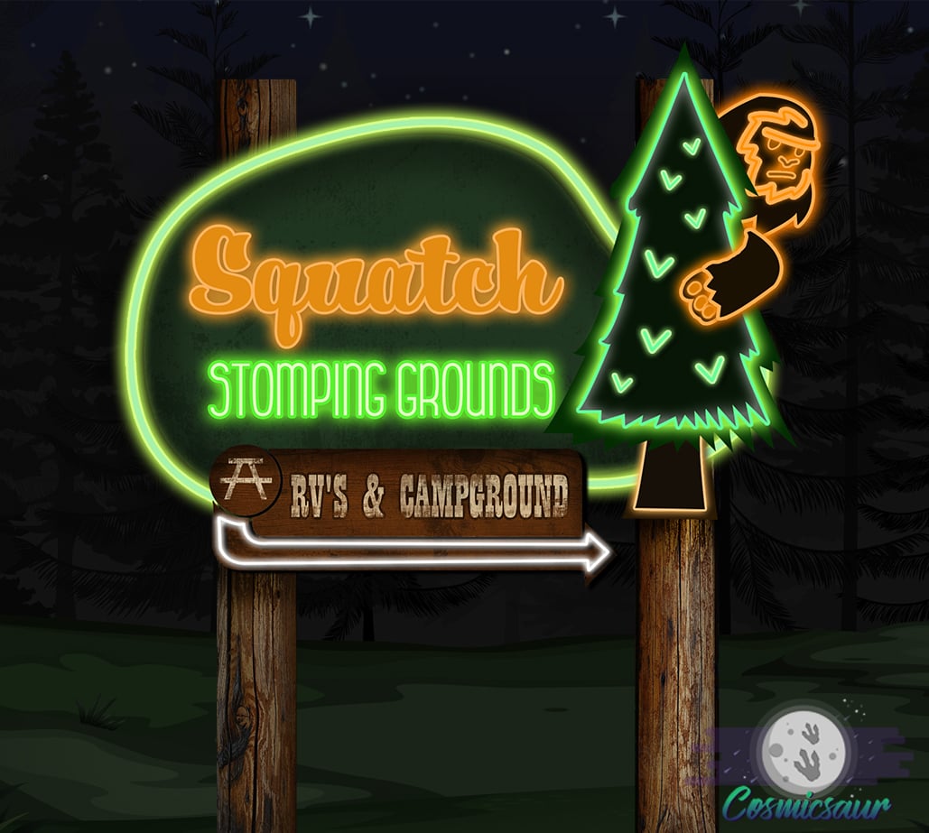 Cryptid Neon Signs: Squatch Stomping Grounds