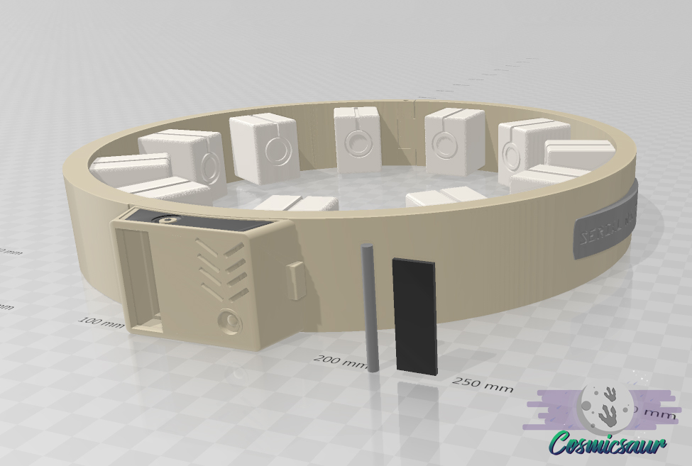 Can be used with resin or PLA printers. Inner collar is approx. 150mm in diameter. Can be sized up or down to fit your measurements.