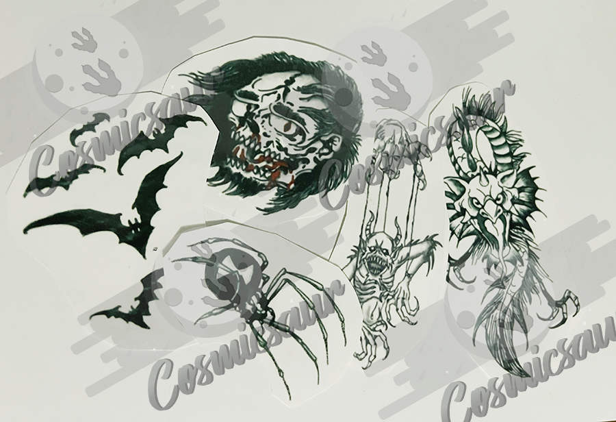 Eddie's tattoos as seen on 'Stranger Things'. One full set features all 5 tattoos.