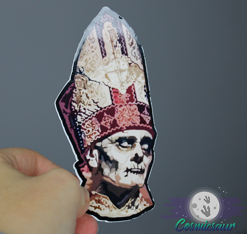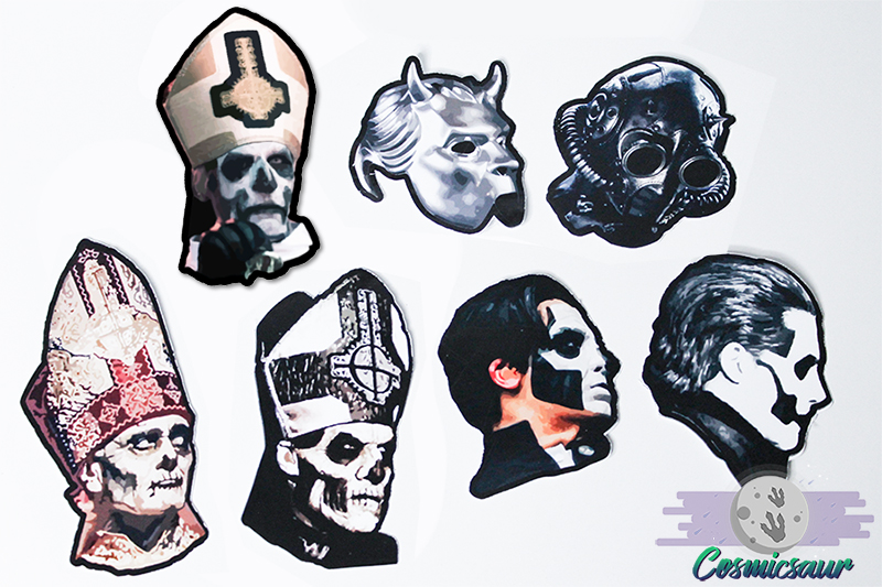 7 waterproof vinyl stickers measuring 2.7 inces wide and 3-3.5 inches high.