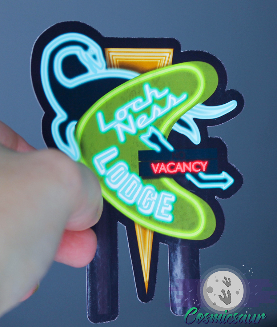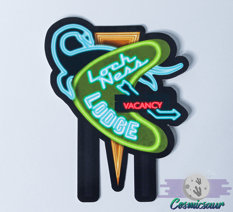 Vinyl sticker featuring my Cryptid Retro Signs: Lochness Lodge!*