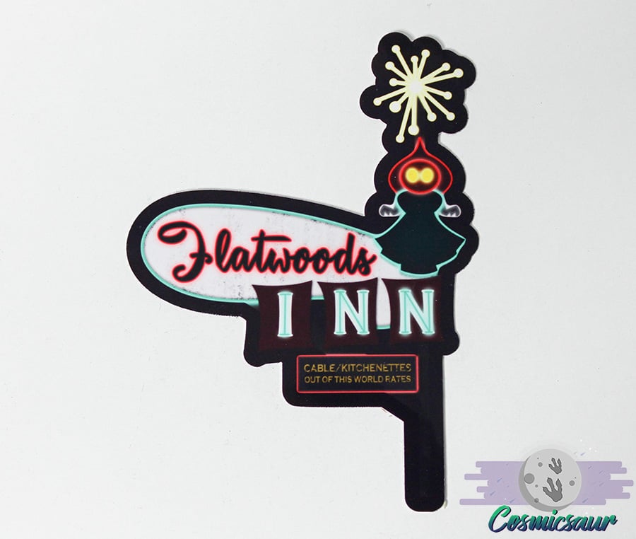 Vinyl sticker featuring my Cryptid Retro Signs: Flatwoods Inn*