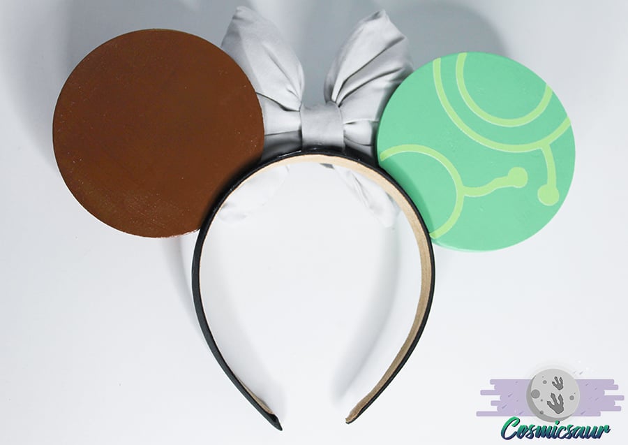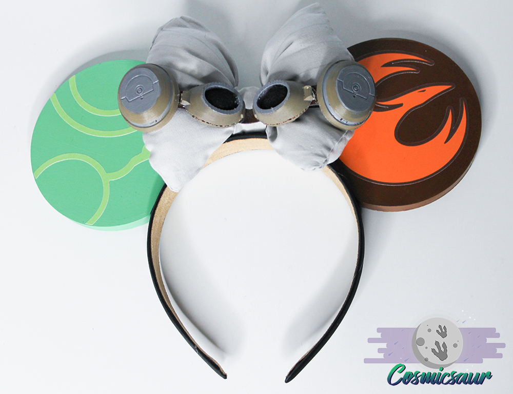 Hand painted and featuring high quality vinyl decals. Light grey bow with goggle details. Affixed to a black headband with moleskin padding. Light weight plastic to insure comfort.