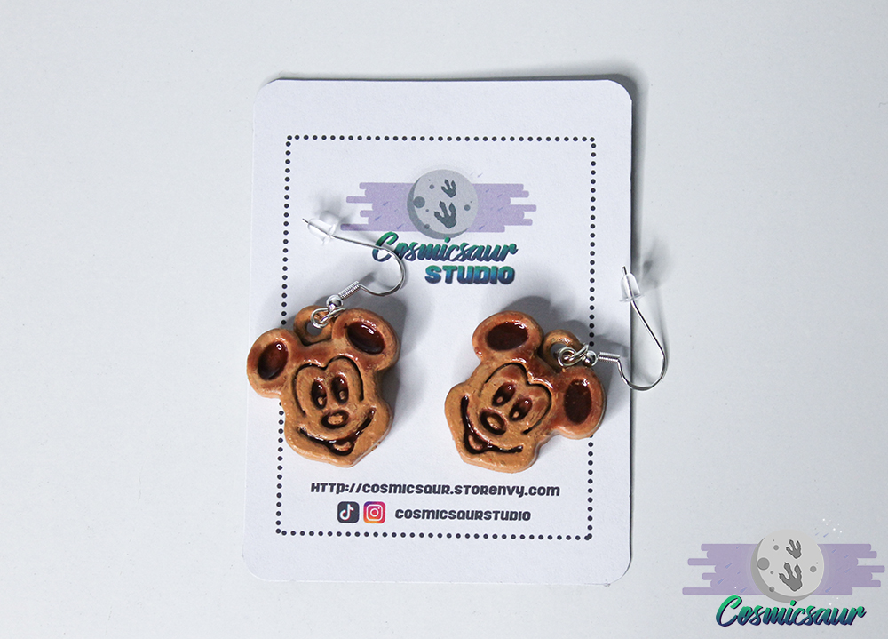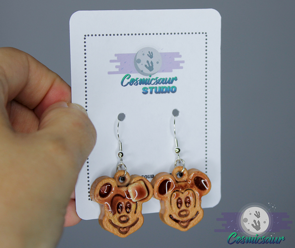 3d printed, hand painted/crafted mouse waffle earrings, with steel posts.